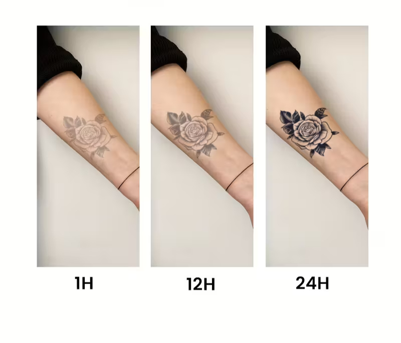 Ce sleeve grand format XXL (46 x 15 cm) est conçu pour habiller le bras entier, de l’épaule au poignet. Son style irezumi classique — avec ses dégradés gris, ses vagues stylisées et ses détails ciselés — en fait une pièce d’exception, comparable à un vrai travail de tatoueur. Formulé à base de jus d’herbe naturel, il tient jusqu’à 14 jours, résiste à l’eau et reste parfaitement mat sur la peau.