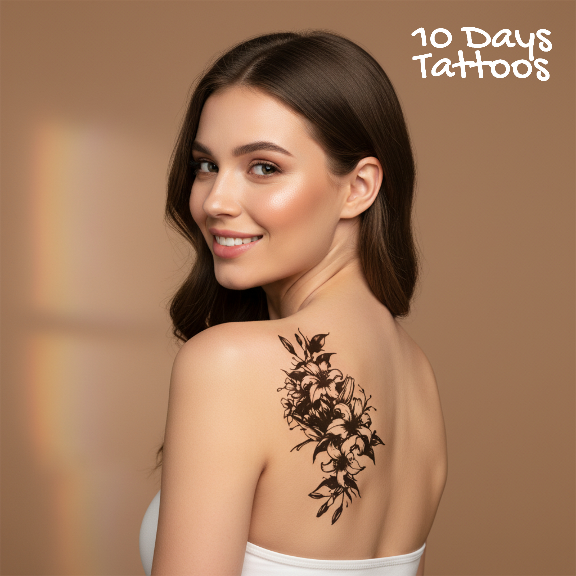 Sublimez votre silhouette avec cette élégante composition florale verticale de 16×12 cm. Roses délicates et feuillages raffinés dans un style noir artistique, pour un look chic et naturel qui dure jusqu’à 14 jours. Waterproof, facile à poser, parfait pour un style sophistiqué et intemporel !