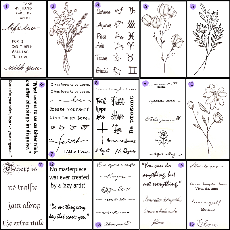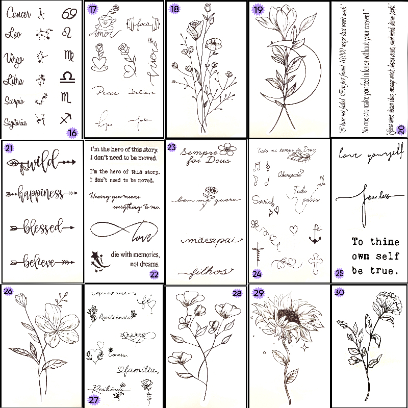 Exprimez-vous ! 30 feuilles de tatouages temporaires waterproof, motifs lignes, cœurs, notes musicales, flèches, visages, écritures… Facile à appliquer et à retirer. Idéal pour des looks créatifs.