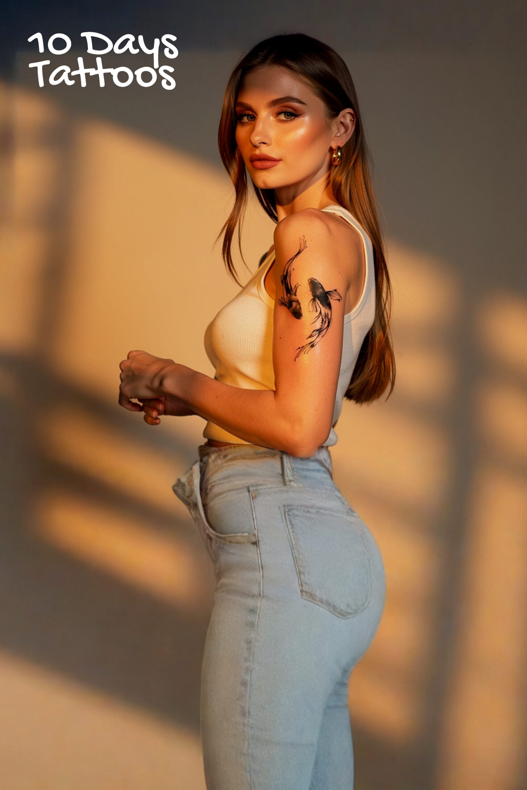 Cheville ou bas de jambe — fluide et naturel, comme si les carpes nageaient sur la peau