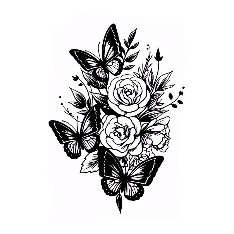 Exprimez votre élégance avec ce tatouage semi-permanent 16×12 cm ! 3 papillons gracieux et 3 roses délicates pour un design raffiné qui tient 7-14 jours. Waterproof, facile à poser, parfait pour un look stylé et durable !