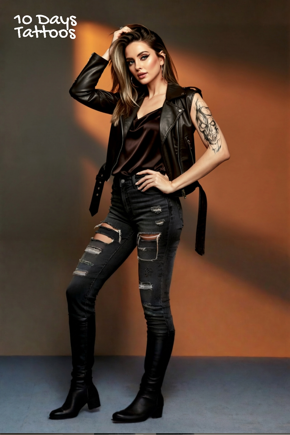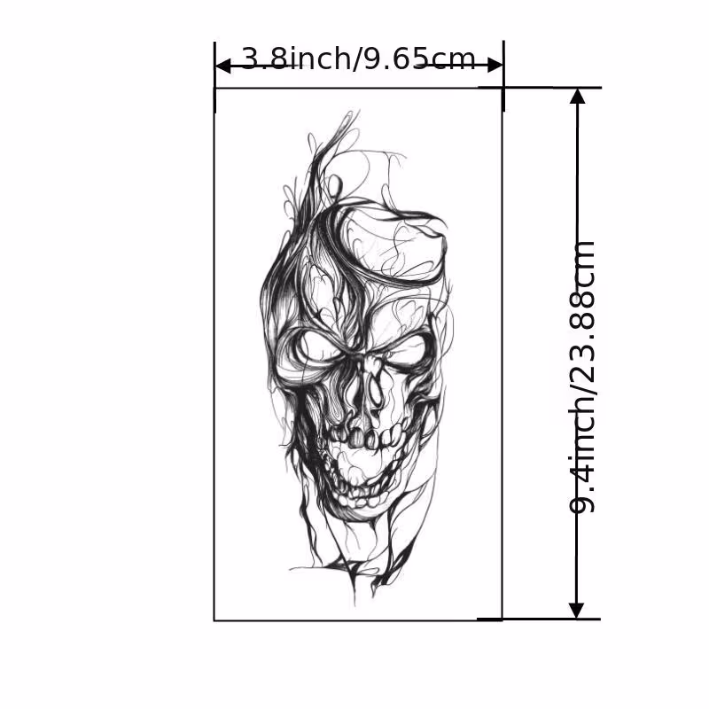 Son format exceptionnellement grand (23,5 x 9,5 cm) en fait une pièce centrale, pensée pour occuper l’espace et imposer une présence. Porté sur la cuisse ou le bras entier, il ne passe pas inaperçu. Formulé à base de jus d’herbe naturel, il tient jusqu’à 14 jours, résiste à l’eau et reste parfaitement mat sur la peau — pour un rendu brut et authentique, comme un vrai tatouage sketch.